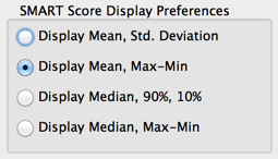 [Display Median, 90%, 10%] radio button: Click this button to display median SMART Score in the "SMART Score" field, the 90% value SMART Score in the "SMART Score High" field, and the 10% value SMART Score in the "SMART Score Low" field.